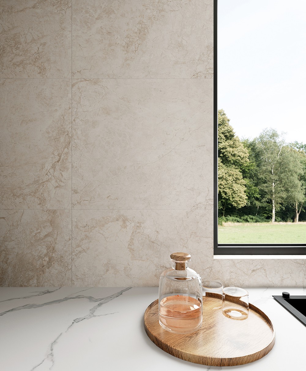 復古淡雅的奶杏色,賦予空間寧靜的歲月感與深遠的故事感,細膩的紋理仿佛記錄了地質變遷與時間沉淀的印記,重現自然界的經典之美。