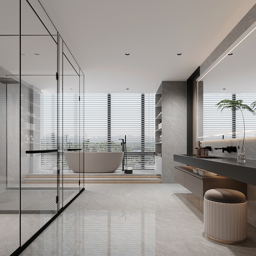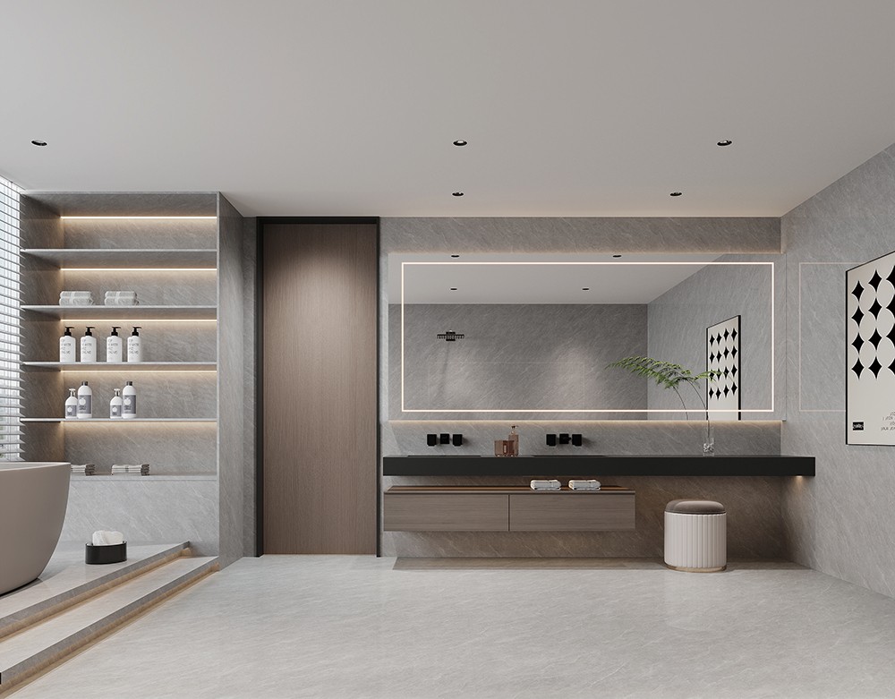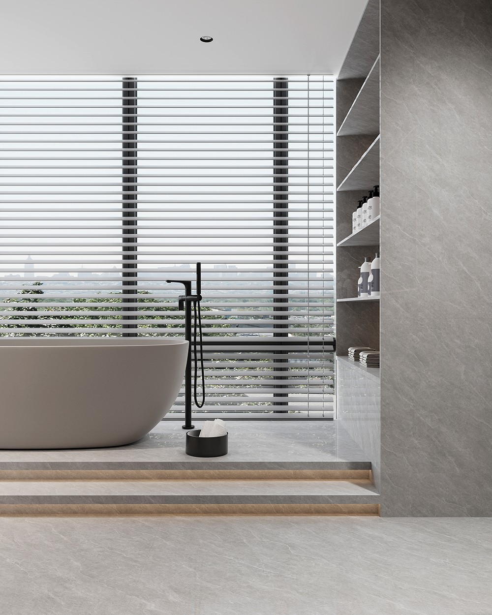 以深灰為主調,白色的斜紋宛如天然石材中的自然裂縫。磚面深灰色調濃郁卻不失細膩,增強了空間的深度感和視覺沖擊力,為家居環境增添一份沉穩與優雅。