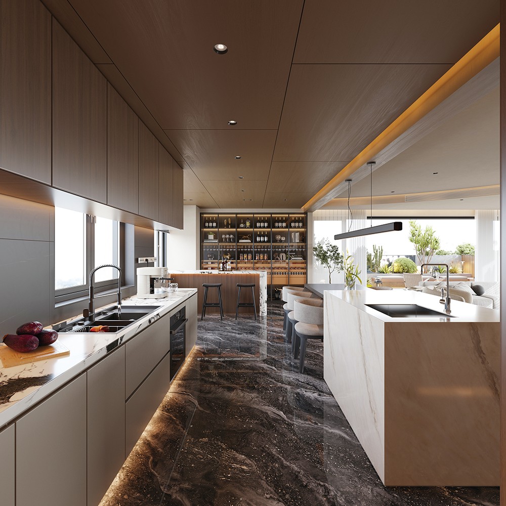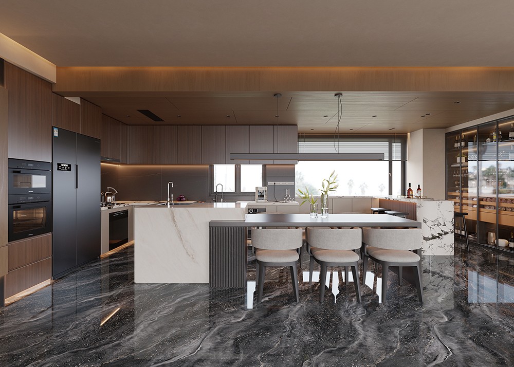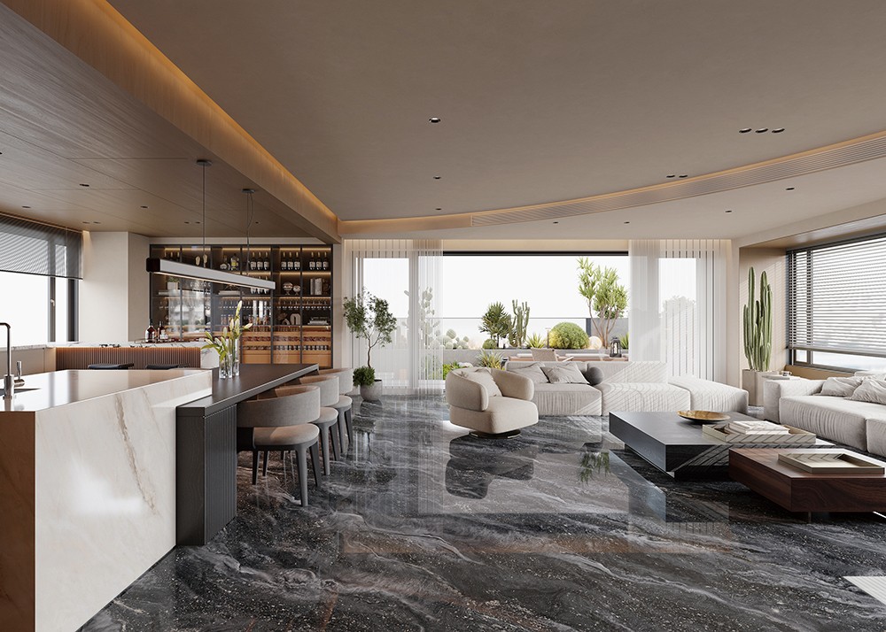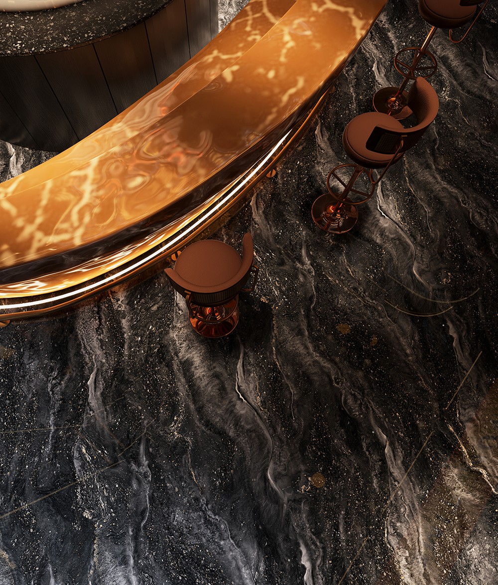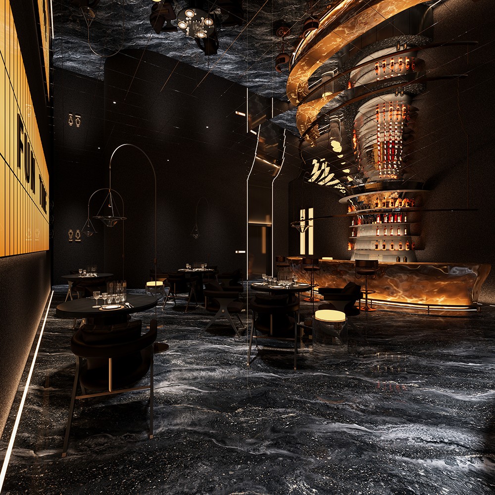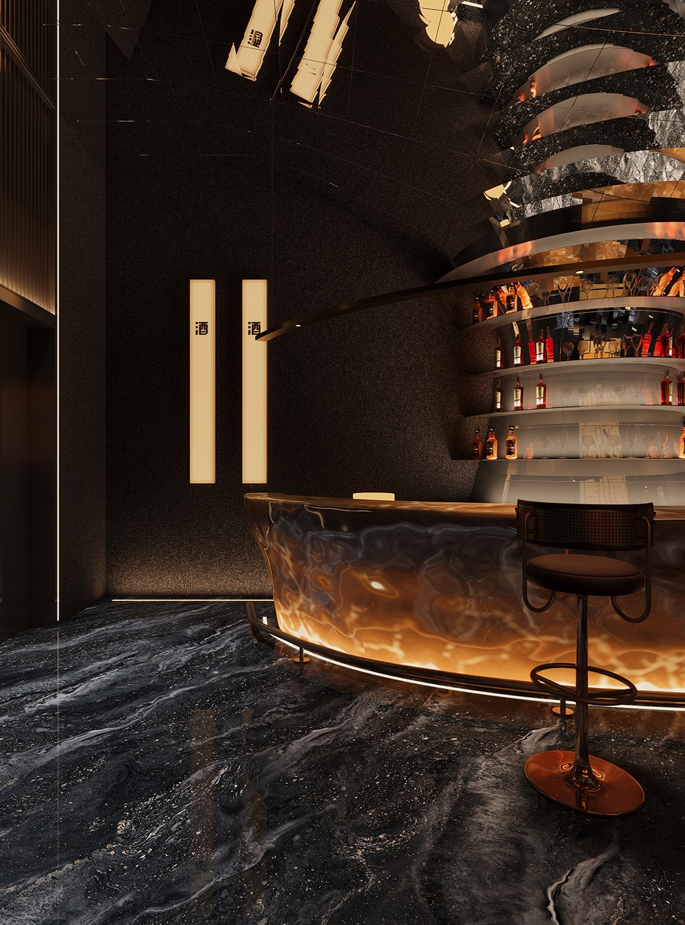 紋理如星河傾瀉、海影浮動。用山川滄海的生動浪漫,賦予空間詩意浪漫與大氣典雅的格調。