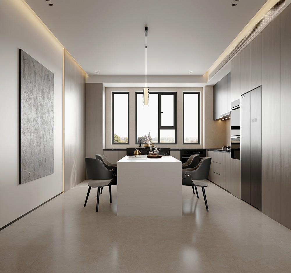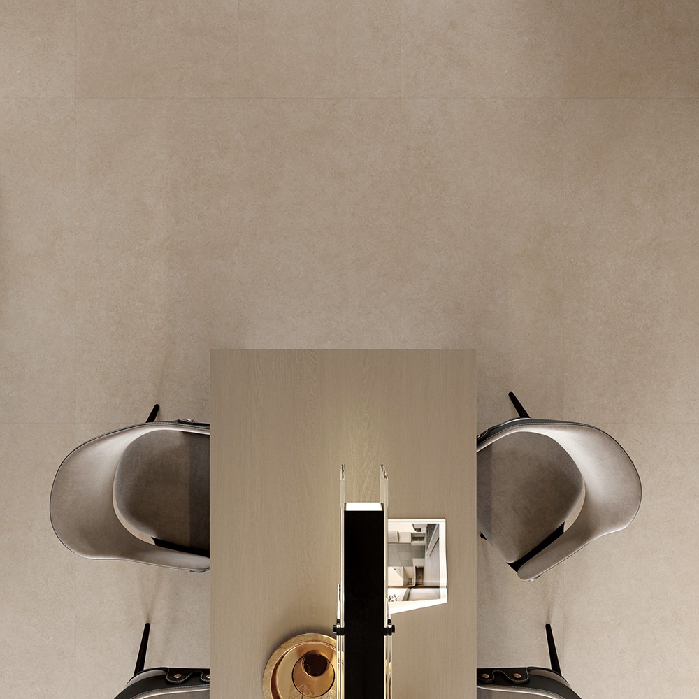 奶杏如晨霧初融,微啞表面蘊藏舊石的溫潤。細啞仿古肌理細膩柔和,色調恬靜,為空間注入一縷清淺而持久的暖意。