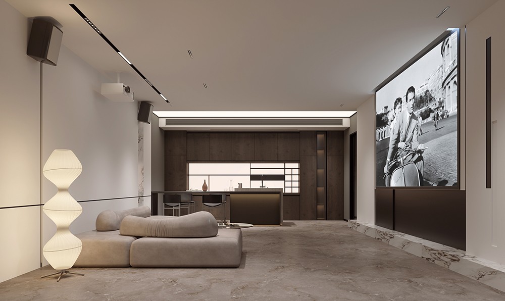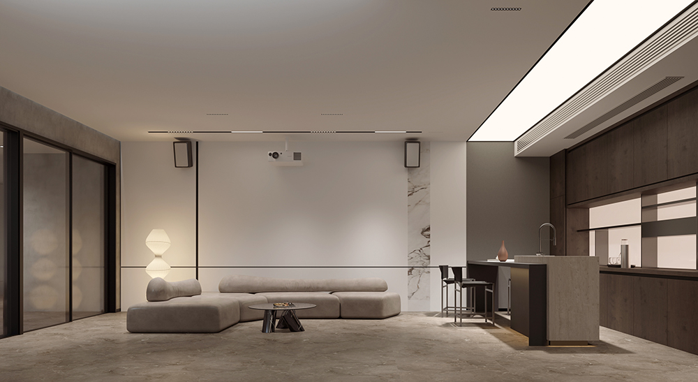 沉穩的一深一淺灰調融合像是自然的冰川留痕,瓷磚表面靈動線條宛若激流穿梭于峽谷山澗,生動還原山與水的碰撞,讓空間舒展且充滿活力。
