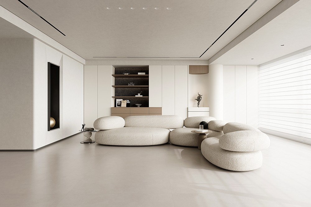 介于云與石之間的清淺灰調,克制而通透。素凈底色上隱現細微顆粒,冷感中透出溫潤。