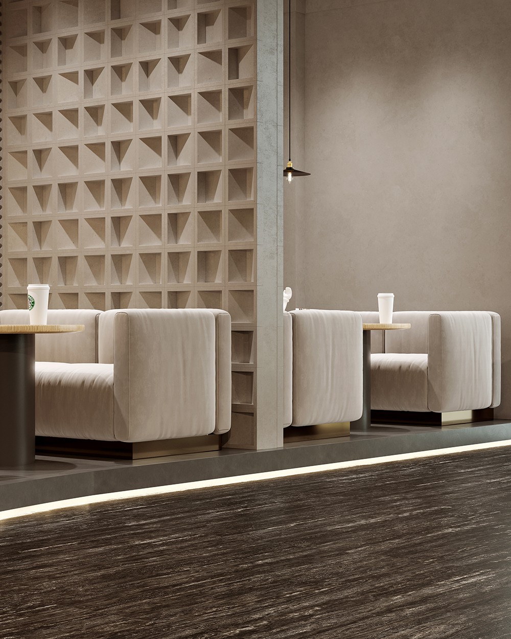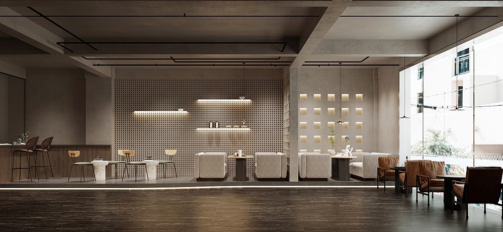 炭灰底面勾勒銳利洞石脈絡,深邃孔隙與冷峻線條并置,呈現現代工業美學下的自然張力。